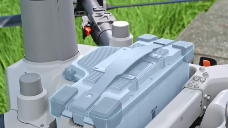 Drono baterija yra didesnės talpos ir lengvesnė, užtikrina itin greitą įkrovimą. Jos novatoriška triguba oro kanalų aušinimo sistema išsklaido šilumą per oro srautą, užtikrindama saugų ir stabilų energijos valdymą bei veiksmingą aušinimą net skrydžio metu.