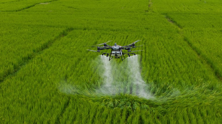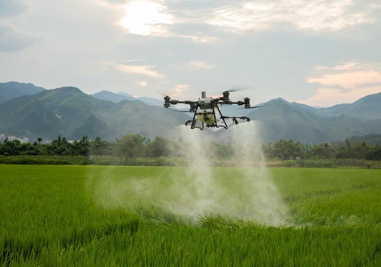 Purškimas su dronu ne tik efektyvus, bet ir nelaužo pasėlių, nesuspaudžia dirvos, nesukelia problemų purškiant itin aukštus augalus.