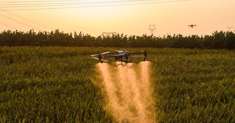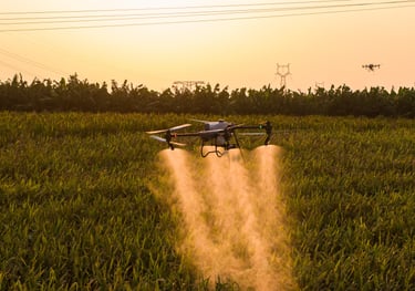 Efektyvumas ir Produktyvumas: Dronų purškimas leidžia pilnai išnaudoti purškiamo produkto potencialą ir užtikrina vienodą trąšų ar kitų produktų paskirstymą, tokiu būdu padidinant derlių ir sumažinant išlaidas. Drono sukuriamas oro srautas varto pasėlių lapija, taip leidžiant purškiamam srautui patekti ant visų augalo paviršių.