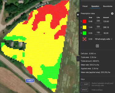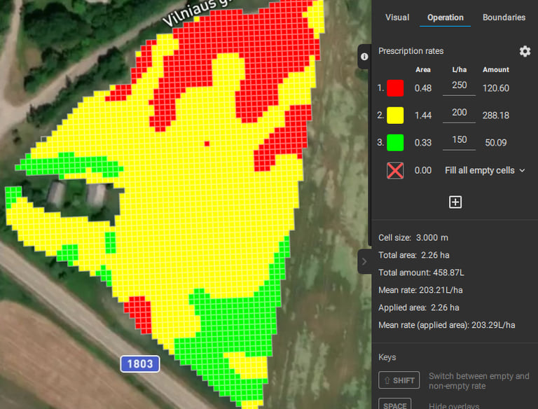 Cm tikslumo kintamos normos žemėlapiai jūsų purkštuvui arba dronui sudaryti pagal Multispektrinio drono surinktus NDVI indekso duomenis.